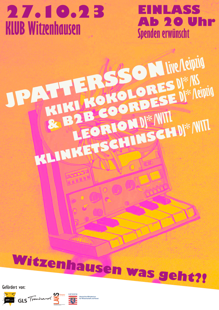 Diesen Herbst gehts rund im und um euren heißt geliebten Klub. Es wird bunt und es kommen ganz tolle Künstler*innen rum. Unter dem Motto „Witzenhausen Was Geht!?“ haben wir die tolle Möglichkeit wunderbare Konzerte, Kabarett und Theater zu genießen und es im Herbst und Winter richtig krachen zu lassen!